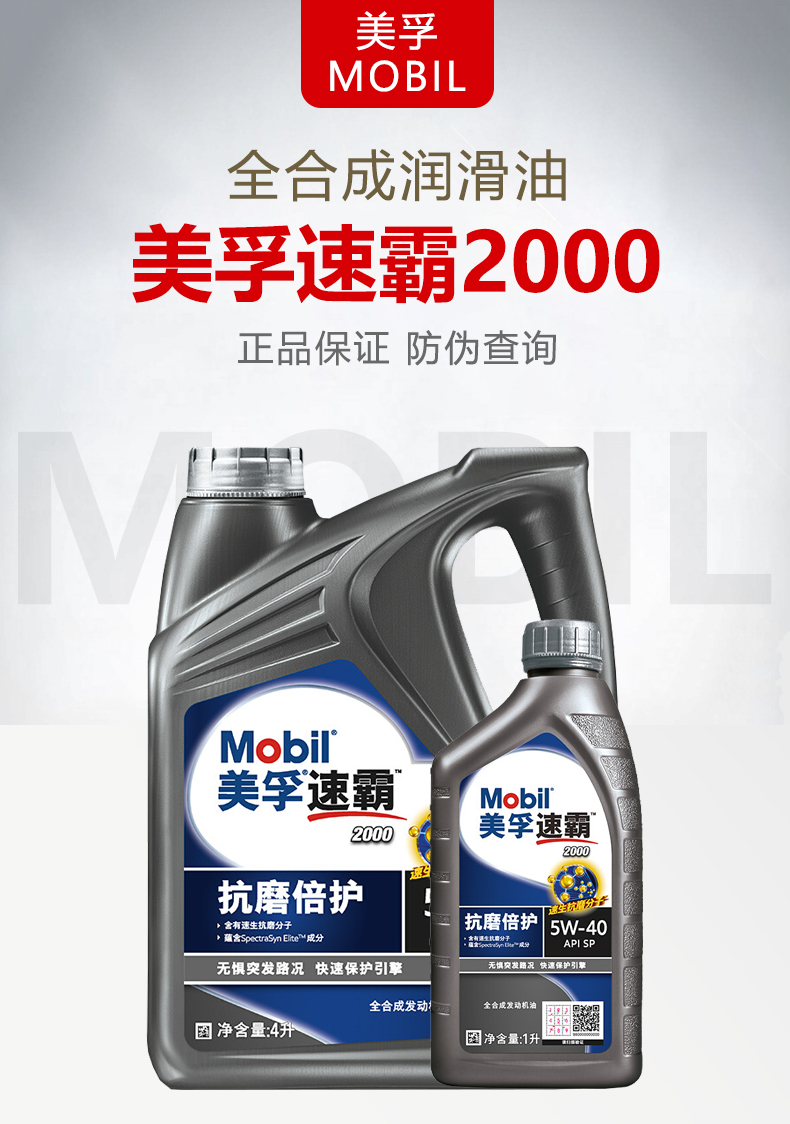 商品名称:美孚 (Mobil)速霸2000机油 汽车发动机润滑油 全合成机油 SN级 速霸2000 5W-40 4L