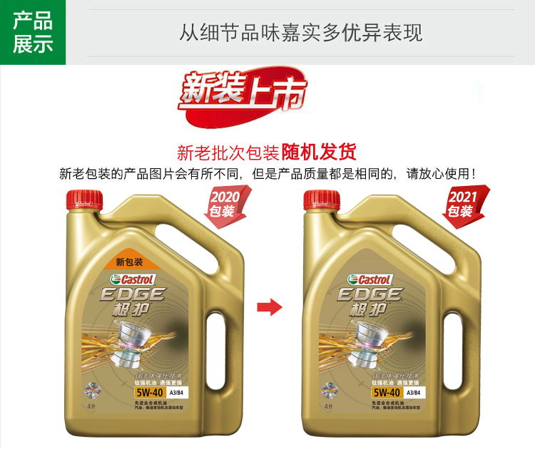 商品名称:嘉实多(Castrol)极护钛流体全合成机油 EDGE 汽车发动机润滑油 API SN级 极护全合成 5W-30 4L