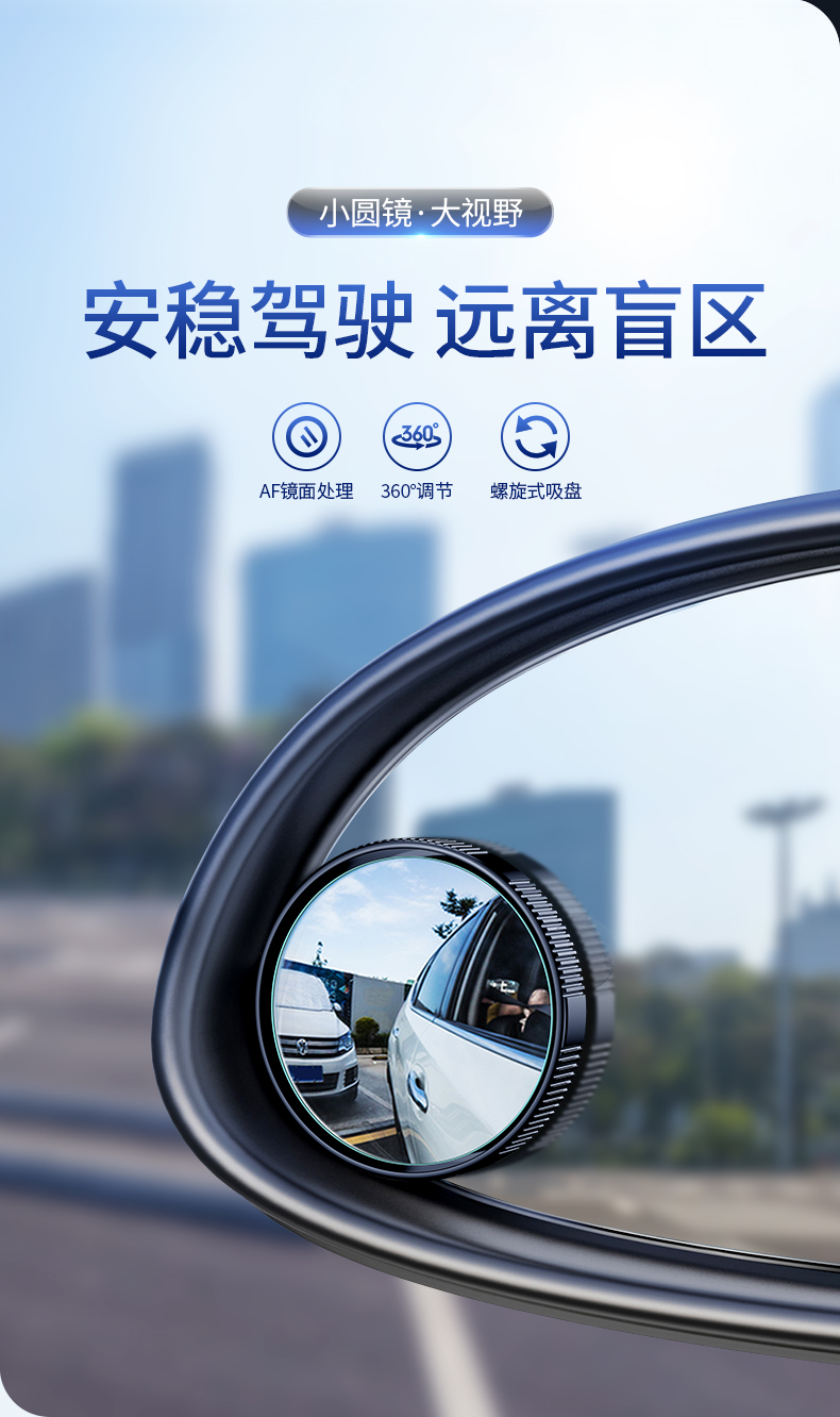 商品名称:卡斐乐 汽车后视镜小圆镜 360度可调旋转广角倒车镜辅助镜小汽车用反光镜高清大视野盲点盲区镜倒车神器 【升级吸盘式】两只装100曲率视野提升200%